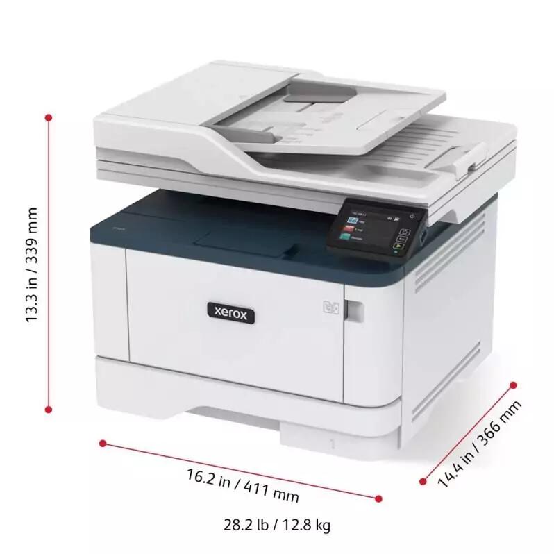 Xerox B315DNI, multifunctional A4 mono, 40ppm, 18ppm in duplex, copy/print/scan/fax, single pass DADF 50 coli, rezolutie 600x600dpi, PCL5 si 6/PS3, fpo 5,8s, fco 5,3s, procesor dual core 1GHz, memorie 512MB, alim 100+250 coli (max 900p), iesire 100 coli, paper 60-217gsm, duty 80k/luna, recomandat 6000p/luna, toner start 2500p, USB/Ethernet/WiFi, port USB frontal, touch screen 2.8", TEC value 0.51 kWh/week, scan speed 46ipm mono / 20ipm color, duplex 92ipm mono/40ipm color, scan to USB, E-mail, FTP, Network, Folder, scan format TIFF, JPG, PDF, Secure PDF, warm up 70s, consumabile: 006R04379 (3k), 006R04380 (8k), 006R04381 (20k), drum 013R00690 (40k), dimensiuni: 33.9x41.1x36.6cm, greutate 12.8kg, garantie 12 luni, on depot.