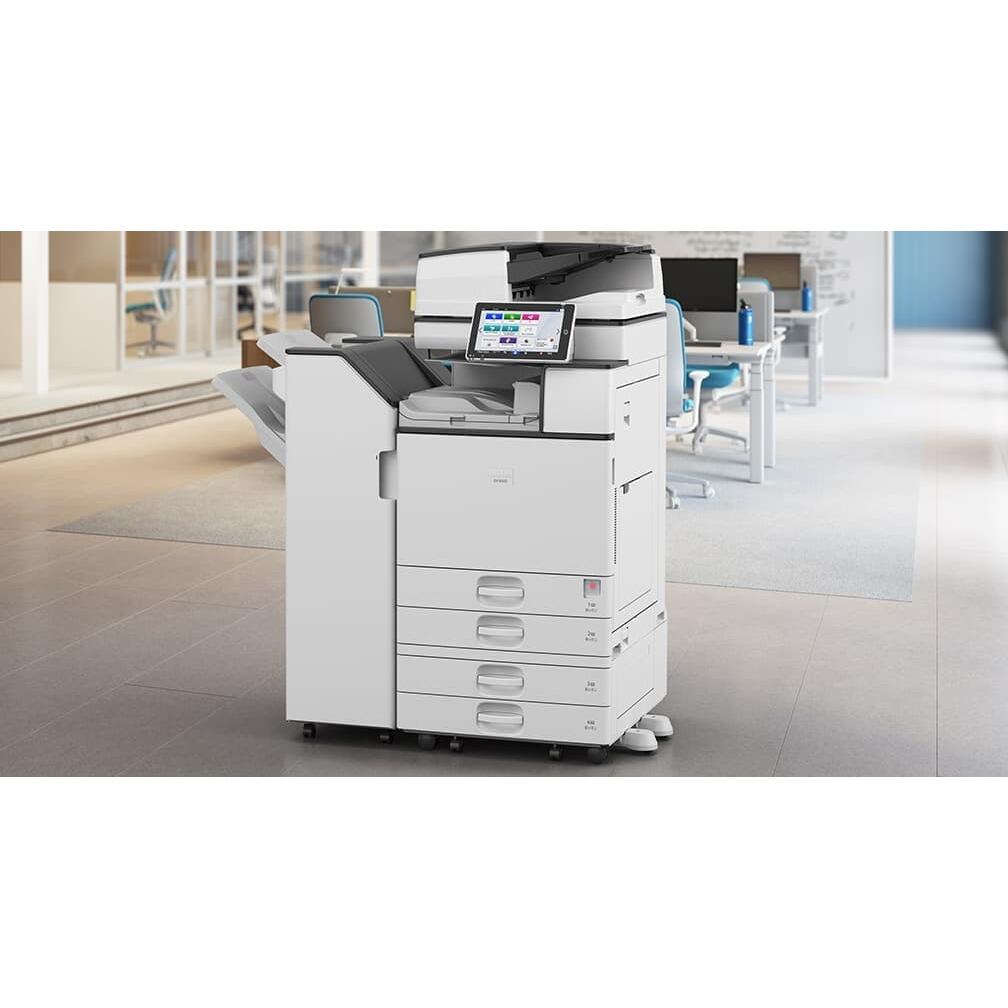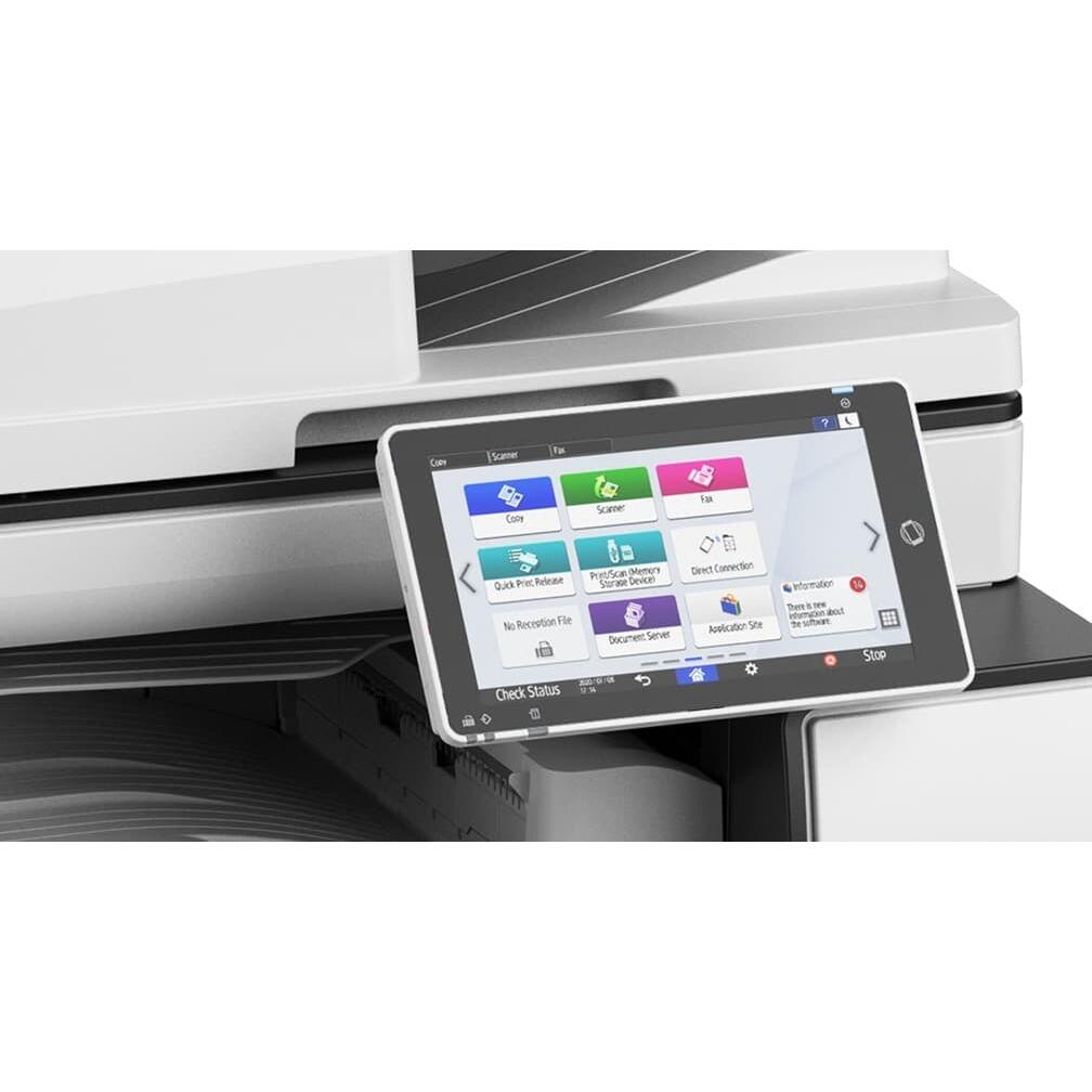 Ricoh IM4000A, multifunctional A3 mono, 40ppm A4, 19.5ppm A3, 40ppm A4 in duplex, copy/print/scan, single pass SPDF (DADF) 220 coli, rezolutie print 1200x1200dpi, copy 600x600dpi, PCL5 si 6/PS3/PDF, fco 3,6s, procesor 1.36GHz, memorie 2GB+320GB HDD, alim 100+2x550 coli (max 4700), iesire 500 coli (max 3625), paper 52-300gsm, duty 200k/luna, recomandat 10000p/luna, USB/Ethernet Gigabit (opt WiFi), port USB frontal, touch screen 10.1", TEC value 0.47 kWh/week, scan speed 120ipm/240ipm duplex, scan to E-mail, USB, SD Card, URL, FTP, SMB, scan format TIFF, JPEG, PDF, PDF/A, high compression PDF, warm up 17.9s, consumabile: toner 842349 (37k), cilindru D1979510 (160k), developer D1979641 (160k), dimensiuni: 58.7x67.3x96.3 cm, greutate 76,5kg, garantie 12 luni, on site. INSTALARE GRATUITA. Include toner.