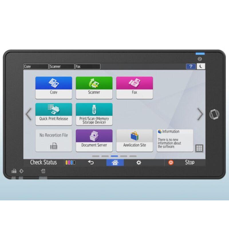 Ricoh IMC2510, multifunctional SRA3 color, 25ppm A4, 13ppm A3, 25ppm A4 in duplex, copy/print/scan (opt fax) , ARDF (DADF) 100 coli, rezolutie print 4800x1200dpi, copy 600x600dpi, scan 1200dpi, PCL5 si 6/PS3/PDF, fpo 7s color - 4.5s mono, fco 7.4s color-5.1s mono, procesor 1.3GHz, memorie 6GB+256GB SSD (opt SSD max 1TB / HDD 320GB), alim 100+2x550 coli (max 2300), iesire 500 coli (max 1625), tray paper 52-300gsm, ARDF paper 41-220gsm, standard banner 320 x 1260mm, hard toner lock, duty 40k/luna, recomandat 4000p/luna, USB/Ethernet Gigabit/Bluetooth (opt WiFi), port USB frontal, touch screen 10.1", TEC value 0.25 kWh/week, scan speed 80ipm, scan to USB, E-mail, folder, scan format TIFF, JPEG, PDF, High compression PDF, PDF/A, Encryption PDF, opt OCR, warm up 24s, consumabile: toner black 842565 (16.5k), high black (842561 (30k), cyan 842568 (5,5k), high cyan 842564 (18k), magenta 842567 (5,5k), high magenta 842563 (18k), yellow 842566 (5,5k), high yellow 842562 (18k), waste 418425 (100k), cilindru KCMY D0DZ2205 (80k), dimensiuni: 58,7x70,1x91,3 cm, greutate 89.7kg, garantie 12 luni, on site. INSTALARE GRATUITA. Include set tonere de mare capacitate.