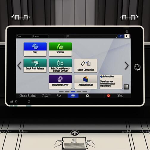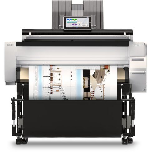 Ricoh IMCW2200, multifunctional A0 color GEL-Jet, 1,9ppm A0 - 3,8ppm A1, pigment based ink, copy/print/scan + cutter, rez 600dpi, PS, fco 51s A0 mono 81s A0 color, procesor 1.6GHz, memorie 4GB+320GB HDD, alim bypass 1 coala + 1 roll paper, latime 297-914.4mm, diametru 175mm, lungime maxima rola 914-33000mm, formate A0/A1, grosime 64-190gsm, USB/Ethernet (opt WiFi), cartuse start CMYK (28/56/56/60ml), warm up 40s, scan speed 35.3mm/s color - 106.7mm/s mono, scan destinations: network, E-mail, folder, touch screen 9" tiltable, cartuse CMYK, dimensiuni 1384x675x1220mm, greutate 125kg, garantie 12 luni, on site. INSTALARE GRATUITA.