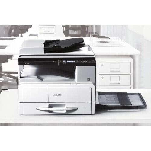Ricoh MP2014AD, multifunctional A3 mono, 20ppm A4, 12ppm A3, 16ppm A4 in duplex, copy/print/scan, ARDF (DADF) 50 coli, rezolutie print-copy 600x600dpi, GDI, fco 6.5s, procesor 360MHz, memorie 256MB, alim 100+250 coli (max 1350), iesire 250 coli, paper 52-216gsm, duty 30k/luna, recomandat 5000p/luna, toner start 4000p, USB (opt Ethernet), port USB frontal, LCD-4 line screen, TEC value 1.515 kWh/week, scan speed 15ipm mono/6cpm color, scan to E-mail, opt folder, scan format TIFF, JPEG, PDF, warm up 31s, consumabile: toner 842128 (4k), toner high 842135 (12k), drum B0399510 (60k), developer D2459640 (60k) , dimensiuni: 58,7x58,1x53,7 cm, greutate 33.5kg, garantie 12 luni, on site.