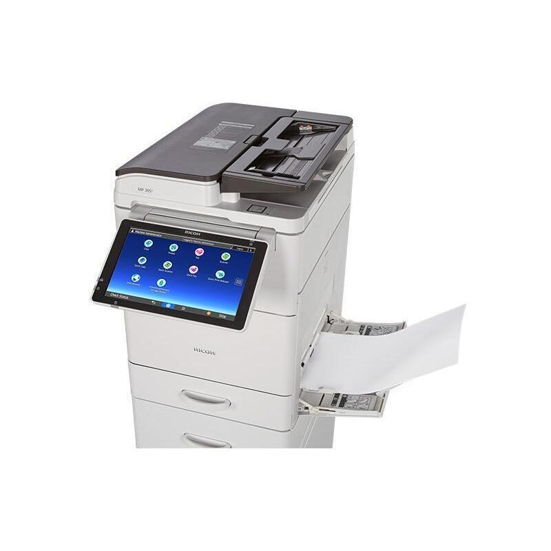 Ricoh MP305+SPF, multifunctional A4 mono (+A3), 30ppm A4, DUPLEX, copy/print/scan/fax, ARDF (DADF) 50 coli, rezolutie print-copy 600x600dpi, PCL 5 si 6/PS3/PDF, fco 4.9s, procesor 533MHz, memorie 2GB+320GB HDD, alim 10+250 coli (max 760), iesire 100 coli, paper 52-163gsm, duty 20k/luna, recomandat 7500p/luna, USB/Ethernet/SD slot (opt bluetooth), port USB frontal, touch screen 10.1", TEC value 0.42 kWh/ week, scan speed 30ipm, scan to USB, E-mail, folder, SD card, scan format TIFF, JPEG, PDF, warm up 27s, consumabile: toner 842347 (9k), cilindru D2052249 (60k), dimensiuni: 35x49,3x50,5 cm, greutate 32kg, garantie 12 luni, on site. Include toner.