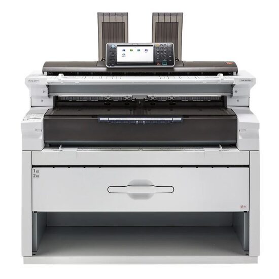 Ricoh MPW6700SP, multifunctional A0 mono, 3,3ppm A0 - 6,7ppm A1, copy/print/scan, , 600dpi, PS3/PDF/HP-GL, procesor 1.06GHz, memorie 2.5GB+320GB HDD, RPCS/PS3/HP-GL/TIFF, fco 18s, alim bypas+2 roll papers, latime 210-914.4mm, maximum copy size from roll feeder 914-15000mm / from bypass 914-2000mm, formate A0/A1/A2/A3/A4, grosime 51-134gsm, duty 3000m/luna sau 5509p A1/luna, 5mm unprintable margins, USB/Ethernet (opt WiFi), port USB frontal, touch screen 9" tiltable, scan speed color 26.7mm/s - mono 80mm/s, warm up 120s, machine life 1.683.000 A1, toner 888029 (2,4k), developer B1259640 (50k), drum D2069510 (50k), dimensiuni 1250x755x1215mm, greutate 240kg, garantie 12 luni, on site. INSTALARE GRATUITA. Tonere si developere incluse. (2 x each).