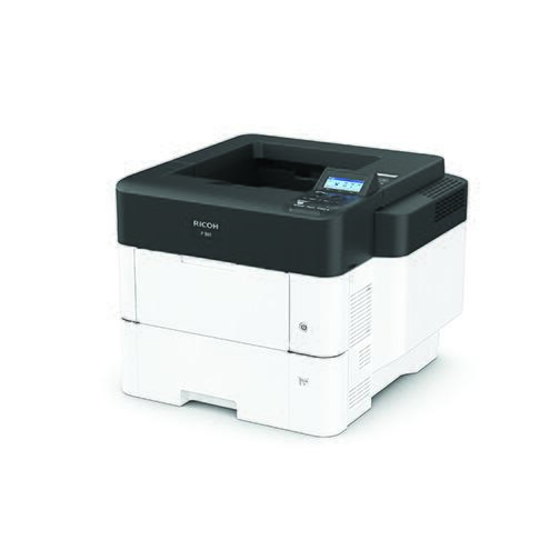 Ricoh P801, imprimanta A4 mono, 60ppm, 43ppm in duplex, rezolutie 1200x1200dpi, PCL5 si 6, fpo 2,4s, procesor 1,1GHz, memorie 2GB (opt HDD 320GB), alim 100+500 coli (max 2600), iesire 500 coli, paper 60-220gsm, duty 150k/luna, recomandat 16600p/luna, USB/Ethernet Gigabit/NFC (opt WiFi) , toner start 11000p, warm up 25,4s, TEC value 3 kWh/week, consumabile: toner 418478 (25,5k), toner 418481 (40k), cilindru M0CH3051 (500k), dimensiuni: 44,3x41x36,6 cm, greutate 18kg, garantie 12 luni, on depot.