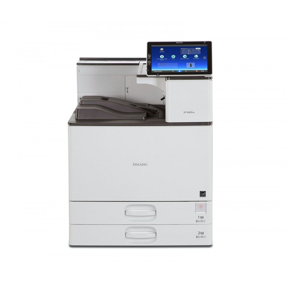 Ricoh SP8400DN, imprimanta SRA3 mono, 60ppm A4, 60ppm in duplex, rezolutie 1200x1200dpi, PCL5 si 6/PS3/PDF, fpo 2,2s, procesor 1,46GHz, memorie 2GB (opt 320GB HDD), alim 100+2x550 coli (max 4700), iesire 500 coli (max 4000), paper 60-300gsm, duty 300k/luna, recomandat 53333p/luna, USB/Ethernet Gigabit (opt WiFi), warm up 21s, touch screen 10.1", consumabile: toner 821277 (51k), drum D1979510 (160k), dimensiuni 58,7x65,3x72 cm, greutate 57kg, garantie 12 luni, on site. Toner inclus.