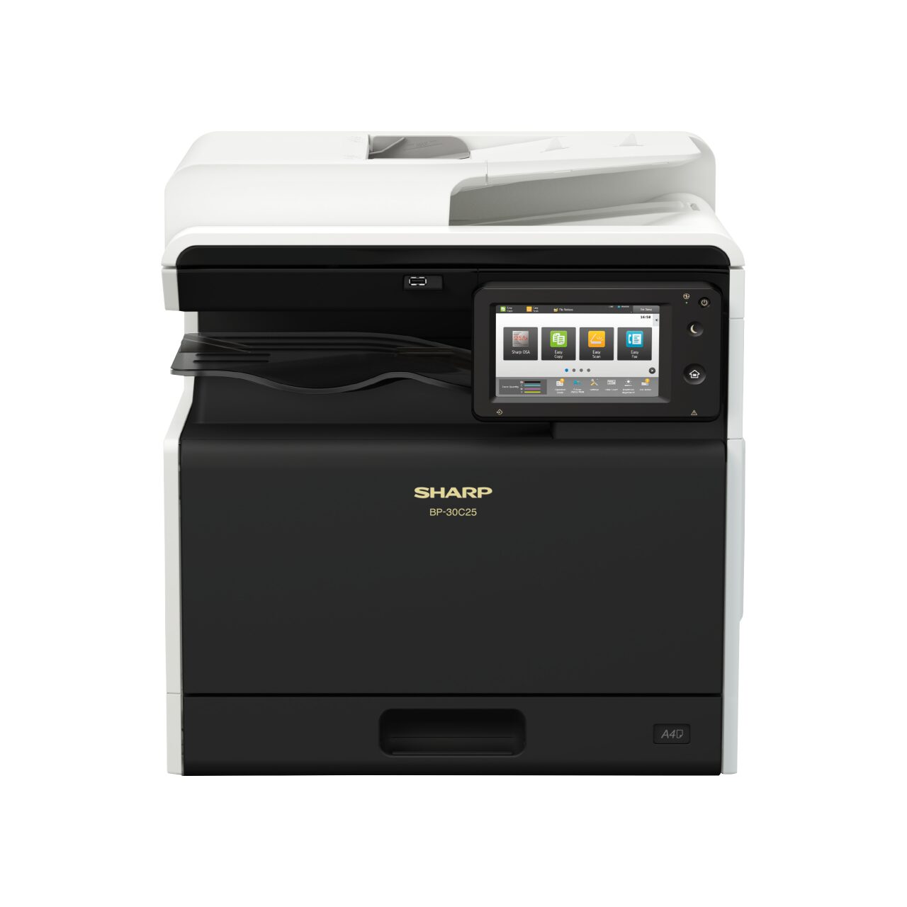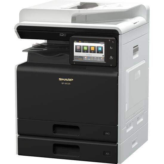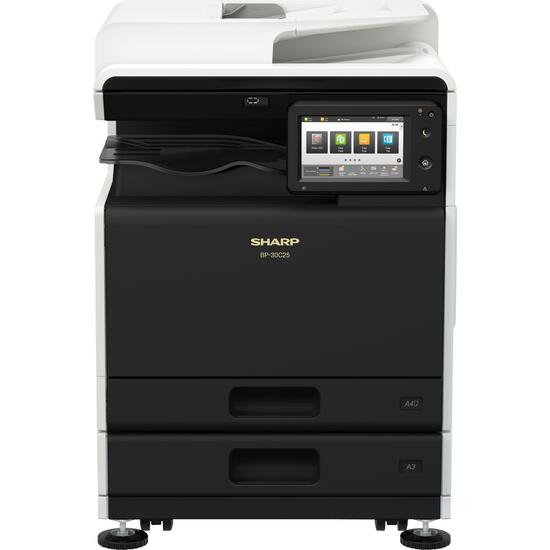 Sharp BP30C25, multifunctional A3W color, 25ppm A4, 14ppm A3, 25ppm A4 in duplex, copy/print/scan, RSPF (DADF) 100 coli, rezolutie print 600x600dpi / 9600x600dpi, copy 600x600dpi, PCL6 (opt PS3), fpo/fco 11s color - 8s mono, procesor quad core 1,4GHz, memorie 5GB, SSD 128GB, alim 100+250 coli (max 1850), iesire 250 coli, paper 55-256gsm, duty 84k mono - 36k color/luna, recomandat 2100p mono - 900p color/luna, USB/Ethernet Gigabit (opt WiFi/NFC), touch screen 7", TEC value 1.2 kWh/week, scan speed 52ppm/20ipm duplex, scan to E-mail, FTP, Shared folder (SMB), Local Drive, USB, opt Desktop, Fax, scan format TIFF, PDF, Encrypted PDF, JPEG, XPS, opt Compact PDF, Searchable PDF, OOXML(pptx, xlsx, docx), TXT, RTF, warm up 18s, toner lock (blocare scoatere), serverless follow-me print, two LAN support, consumabile: toner black BPGT30BB (10k), BPGT30BA (20k), cyan BPGT30CB (7.5k), BPGT30CA(15k), magenta BPGT30MB(7.5k), BPGT30MA(15k), yellow BPGT30YB(7.5k), BPGT30YA(15k), drum BPDR20SA (120k), developer black BPGV20BA (120k), color BPGV20SA (120k), waste BPHB200 (30k), dimensiuni 57 x 63 x 65,3 cm, greutate 54kg, garantie 12 luni, on site. Include set tonere.