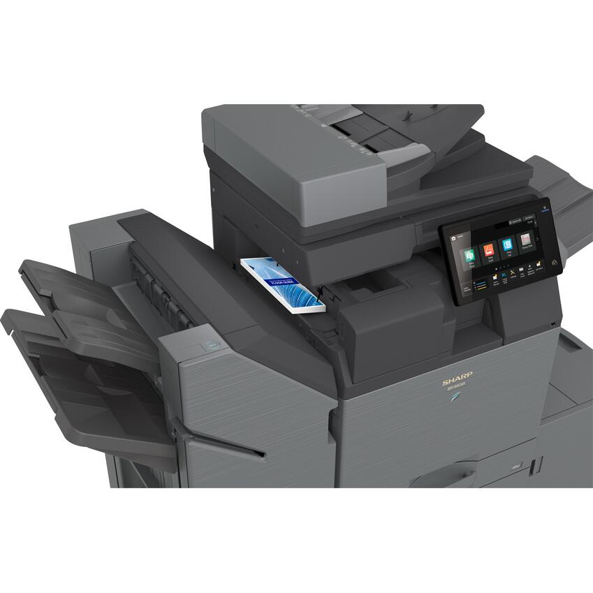 Sharp BP50C36, multifunctional SRA3 color, 36ppm A4, 18ppm A3, 36ppm A4 in duplex, copy/print/scan, RSPF (DADF) 100 coli, rezolutie print 1200x1200dpi / 9600x600dpi, copy 600x600dpi, PCL6 (opt PS3/PDF), fpo/fco 6.5s color - 4.6s mono, procesor quad core 1,6GHz, memorie 5GB, SSD 128GB (opt 512GB), alim 100+550 coli (max 6300), iesire 500 coli (max 620), paper 55-300gsm, standard banner 320-1300mm, duty 175k mono - 75k color/luna, recomandat 4300p mono -1900p color/luna, USB/Ethernet Gigabit/NFC (opt WiFi+Bluetooth), mobile print, serverless follow-me print, two LAN support, touch screen 10.1", TEC value 0.46 kWh/week, scan speed 80ppm/25ipm duplex, scan to USB, Local Drive, E-mail, FTP, Shared folder (SMB), opt Desktop, Fax, scan format TIFF, PDF, Encrypted PDF, JPEG, XPS, opt Compact PDF, Searchable PDF, OOXML(pptx, xlsx, docx), TXT, RTF, warm up 16s, toner lock (blocare scoatere), consumabile: toner black BPGT70BB (20k), BPGT70BA (40k), cyan BPGT70CB (12k), BPGT70CA (24k), magenta BPGT70MB (12k), BPGT70MA (24k), yellow BPGT70YB (12k), BPGT70YA (24k), developer black BPGV70 (1200k), developer color BPGV70SA (1200k), drum BPDR70SA (250k black - 186k color), waste BPHB700 (50k), dimensiuni 60,8 x 65,3 x 82,9 cm, greutate 78kg, garantie 12 luni, on site. INSTALARE GRATUITA. Include set tonere.