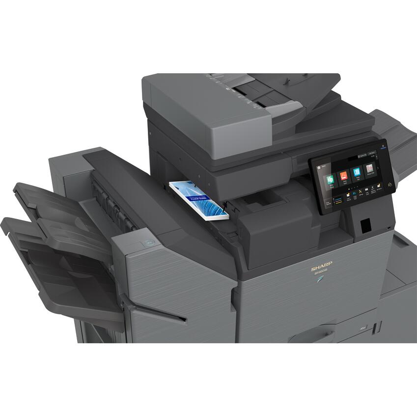 Sharp BP60C31, multifunctional SRA3 color, 31ppm A4, 15ppm A3, 31ppm A4 in duplex, copy/print/scan, RSPF (DADF) 100 coli, rezolutie print 1200x1200dpi / 9600x600dpi, copy 600x600dpi, PCL6/PS3/PDF, fpo/fco 7.6s color - 5.6s mono, procesor quad core 1,6GHz, memorie 5GB, SSD 256GB (opt 512GB), alim 100+550 coli (max 6300), iesire 500 coli (max 620), paper 55-300gsm, standard banner 320-1300mm, duty 175k mono - 75k color/luna, recomandat 3600p mono - 1500p color/luna, USB/Ethernet Gigabit/NFC/WiFi+Bluetooth, motion sensor, mobile print, serverless follow-me print, two LAN support, Microsoft Teams connector, standard OCR/Cloud/OSA (integrare aplicatii externe), touch screen 10.1", TEC value 0.36 kWh/week, scan speed 80ppm/25ipm duplex, scan to USB, Local Drive, E-mail, FTP, Shared folder (SMB), opt Desktop, Fax, scan format TIFF, PDF, Encrypted PDF, Compact PDF, JPEG, XPS, Searchable PDF, OOXML(pptx, xlsx, docx), TXT, RTF, warm up 18s, toner lock (blocare scoatere), consumabile: toner black BPGT70BB (20k), BPGT70BA (40k), cyan BPGT70CB (12k), BPGT70CA (24k), magenta BPGT70MB (12k), BPGT70MA (24k), yellow BPGT70YB (12k), BPGT70YA (24k), developer black BPGV70 (1200k), developer color BPGV70SA (1200k), drum BPDR70SA (250k black - 186k color), waste BPHB700 (50k), dimensiuni 60,8 x 65,3 x 82,9 cm, greutate 79kg, garantie 12 luni, on site. FARA tonere. INSTALARE GRATUITA.