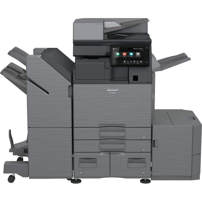Sharp BP70M36, multifunctional A3W mono, 36ppm A4, 18ppm A3, 36ppm A4 in duplex, copy/print/scan, single pass DSPF (DADF) 300 coli, rezolutie print-copy 1200x1200dpi / 9600x600dpi, PCL6/PS3/PDF, fpo/fco 4.5s, procesor quad core 1,6Ghz, memorie 5GB, SSD 256GB (opt 512GB), alim 100+550 coli (max 6300), iesire 500 coli (max 620), paper 55-300gsm, standard banner 305-1300mm, duty 280k/luna, recomandat 8300p/luna, USB/Ethernet Gigabit/NFC/WiFi+Bluetooth, standard Cloud/OSA (integrare aplicatii externe), standard OCR, touch screen 10.1", serverless follow-me print, two LAN support, Microsoft Teams connector, TEC value 0.43 kWh/week, motion sensor, scan speed 140ppm/280ipm duplex, scan to USB, Local Drive, E-mail, FTP, Shared folder (SMB), opt Desktop, Fax, scan format TIFF, PDF, Encrypted PDF, Compact PDF, JPEG, XPS, Searchable PDF, OOXML(pptx, xlsx, docx), TXT, RTF, warm up 14s, consumabile: toner BPGT700 (40k), developer BPGV700 (560k), cilindru BPDR700 (280k), drum unit BPDU700 (280k), waste BPHB701 (300k), dimensiuni 60,9 x 66,2 x 86 cm, greutate 72kg, garantie 12 luni, on site. FARA toner si developer. INSTALARE GRATUITA.