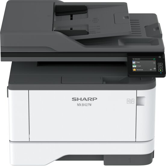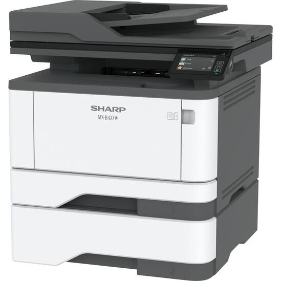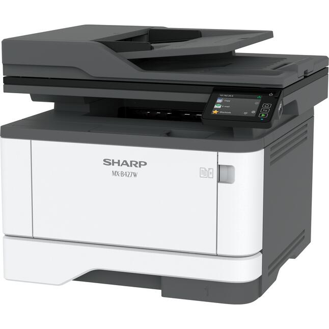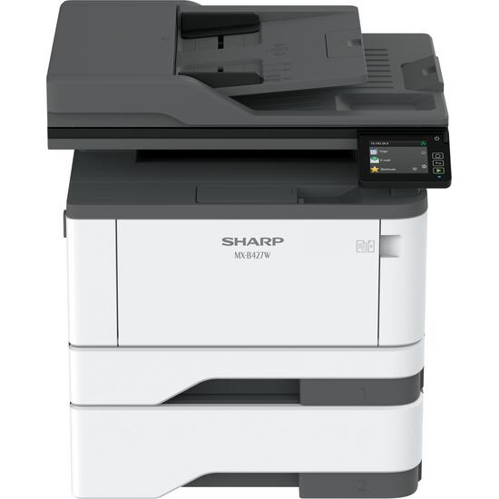 Sharp MXB427W, multifunctional A4 mono, 40ppm, 18ppm in duplex, copy/print/scan/fax, single pass DSPF (DADF) 50 coli, rezolutie 600x600dpi, PCL5/6/PS3, fpo/fco 5,9s, procesor dual core 1GHz, memorie 512MB, alim 100+250 coli (max 900), iesire 150 coli, paper 60-217gsm, duty 80k/luna, recomandat 8000p/luna, toner start 3000p, USB/Ethernet/WiFi, touch screen 2.8", mobile print, TEC value 1.4 kWh/week, scan speed 46ppm mono - 20ppm color/92ipm mono - 40ipm color duplex, scan to E-mail, FTP, Shared folder (SMB), USB, Fax, scan format TIFF, JPEG, PDF, Encrypted PDF, warm up 70s, consumabile: toner MXB43T (3k), MXB42T (20k), cilindru MXB43DU (40k), dimensiuni 41,1 x 36,6 x 33,9 cm, greutate 13kg, garantie 12 luni, on depot.