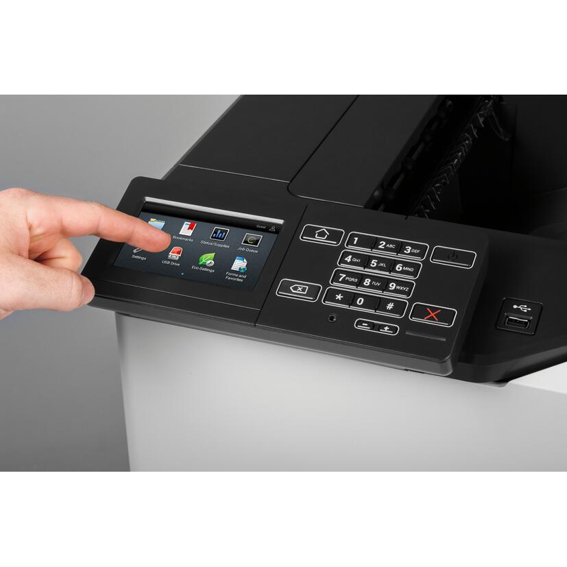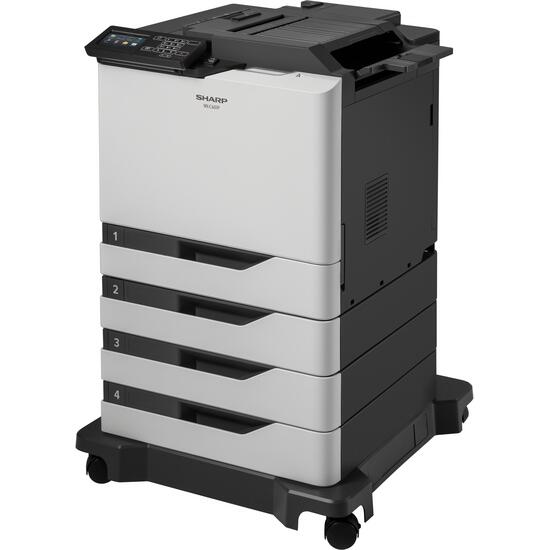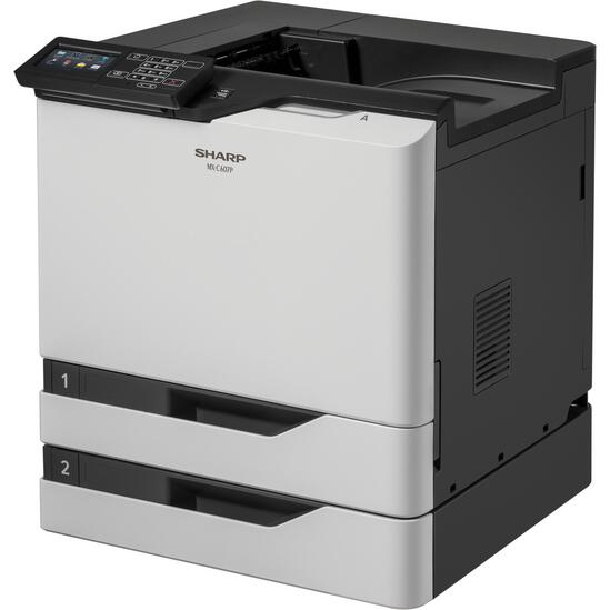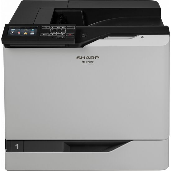 Sharp MXC607P, imprimanta A4 color, 57ppm, 57ppm in duplex, rezolutie 1200x1200dpi, PCL5/6/PS3, fpo 7s, procesor quad core 1,33GHz, memorie 1GB (opt 2GB, opt 500GB HDD), alim 100+550 coli (max 4500p), iesire 500 coli, paper 60-300gsm, duty 200k/luna, recomandat 25000p/luna, toner start 8000p black, 8000p color, USB/Ethernet Gigabit (opt WiFi), touch screen 4.3", TEC value 2.8 kWh/week, standard Cloud /OSA (integrare aplicatii externe), warm up 90s, consumabile toner black MXC55TB (25k), cyan MXC55TC (20k), magenta MXC55TM (20k), yellow MXC55TY (20k), cilindru MXC60DUB (175k), waste MXC60HB (115k), dimensiuni 55,8 x 52,2 x 53,5 cm, greutate 62kg, garantie 12 luni, on site.