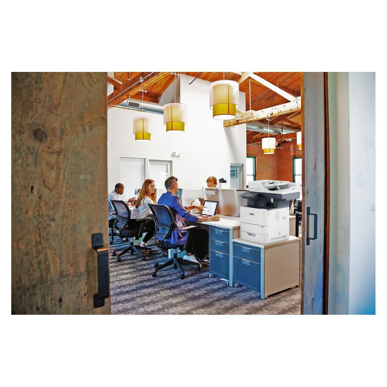 VersaLink B625DN, multifunctional A4 mono, 61ppm, 37ipm in duplex, copy/print/scan/fax, single pass DADF 200 coli, rezolutie print 1200x1200dpi, copy 600x600dpi, PCL5 si 6/PS3, fpo 4.1s, fco 4.6s, procesor quad core 1,2GHz, memorie 4GB+32GB eMMC (opt HDD 500GB), alim 100+550 coli (max tavi 2300p / max total 3850p), iesire 550 coli, paper 52-176gsm, duty 300k/luna, recomandat 30000p/luna, toner start 10000p, USB/Ethernet Gigabit/NFC (opt WiFi+bluetooth), port USB frontal, touch screen tiltable 7", scan speed: simplex 72ppm/duplex 144ipm, scan to USB/Email/home/Network SFTP, SMB, HTTP, HTTPS, FTP, scan formats: PDF, PDF/A, JPEG, TIFF, warm up 127s, consumabile: high 006R04672 (25k), extra high 006R04673 (42k), drum unit 013R00699 (150k), dimensiuni: 55x65x56.5cm, greutate 29kg, garantie 12 luni, on site.